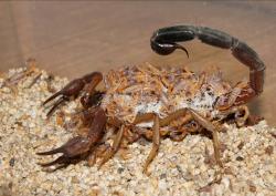 Скорпион действительно, как пишет юный ПОВЕЛИТЕЛЬ крупный и красивый. Так что обращайтесь. Завтра в соответствующем разделе выложу предложение. Для желающих думаю можно будет сразу определиться по полу.