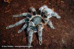 6. Всем привет! В роде Acanthoscurria описан новый вид: - Acanthoscurria borealis Schmidt & Peters, 2005 Это бывший уже пару лет в хобби паук Aphonopelma sp. "Guatamalan Blue", соответствено из Гватемалы. Внешне один-в-один Aphonopelma seemanni, только синего цвета. Весьма забавно. Так вот. А вот как он выглядит. Фото (с) Гая Танслей Следите за систематическими изменениями!