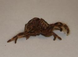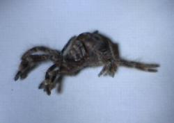 Начал линять и не вылез…З.Ы. покупал 3х паучков в возрасте 1-2L при трех дневном переезде один паучок погиб, приехал уже мертвым, второй прожив неделю или чуть больше тоже умер (должен был линять), третий успешно перелинял 3 раза…