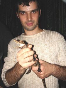 Александр.31 год.По образованию я математик. Почти что кандидат наук (ну, почти - не считается). А поработать довелось и на заводе, и агентом недвижимости, и журналистом, и веб-мастером, и преподавателем ВУЗа (коим официально сейчас и являюсь). Препод я строгий, но студенты меня обожают (Шутка).Да, преподаваемая дисциплина - PR (то бишь связи с общественностью).Насекомые, членистоногие, рептилии и пр. непохожие на людей твари еще в далеком детстве вызывали у меня глубочайшую симпатию, (граничащую с манией :)). В начальной школе прочитал книгу "Юному энтомологу" (не помню автора) и стал собирать коллекцию жуков. К сожалению, в той книге не было ни слова о том, что насекомых не обязательно убивать, а гораздо интересней содержать живыми. Сам я до этой светлой мысли тогда не додумался. Поэтому насаживал жуков на булавки. Коллекция до сих пор лежит в шкафу, так сказать, "немым укором".Прошлой осенью я решил спасти от холодной смерти домового паука (Steotoda). Приютил зверя в банке. Поскольку знаний у меня на эту тему не было, полез в Интернет - а нашел птицеедов, и понял, что ПТИЦЕЕД - ЛУЧШЕЕ ДОМАШНЕЕ ЖИВОТНОЕ 21-ГО ВЕКА.Сейчас у меня - больше десятка пауков разных видов и возрастов, скорпион, а теперь еще и богомолы. Ну, еще живут эублефар Маша и черепашка Шуша (которая обитает у меня уже больше 20 лет!).Вкратце вот. :)Да, фото (с) Shad (соблюдаем авторские права).
