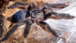 Спасибо друзья за поздравления. Фото самки и самца. Вид сам по себе очень интересный и красивый , кто любит тапинахениусов обязан завести,иначе много потеряет.Я для себя , по коллекционированию, тапок делю на "блестящих" и "пушистых" , субкор граничный в этом плвне и главное с отличной цветовой гаммой. Размер паука среди тапок приличный,уступает только гигасу. Жаль мало вышло нимф и пришлось почти всем отказать ,кто бронировал этот вид ,но сидит ещё одна спаренная самка,может чего и выйдет более путного. С тем разведением,которое я тут опубликовал, вышла следующая история.Самка сразу съела первый кокон и тут же сплела новый. Думаю ,что это стало причиной массового неоплода.самка злится.