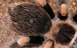 Неделю назад, L8. На абдомене сверху пятнышко в виде небольшой коросты. Думал, может кусочек субстрата застрял, так нет. Мягкой кисточкой пытался удалить, не получилось. Неудобства вроде не причиняет, даже когда кисточкой против шерсти пытался вычесать - никак не прориагировала. В терре сухо, в течении недели до линьки субстрат не увлажнял, поилка стоит. У других пауков такого не наблюдал не разу. В общем, не волнуюсь, а вдруг надо? Что это может быть, надо ли какие-то меры предпринимать?