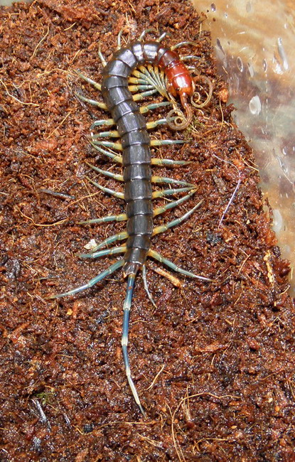 Получила в подарок. Поймана на Борнео. Размер примерно 7-8 см. Ест хорошо. Было предположение, что эта сколопендра Alipes sp., но насколько я понимаю они обитает в Африке....