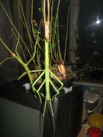 Esox Опубликовано 15 Января, 2011 в 18:08 Автор Жалоба Опубликовано 15 Января, 2011 в 18:08 А какой у Вас вид фобетикуса? Брал как-то у Валеры десяток яиц Phobaeticus serratipes, привезенных из Чехии, по-моему. Но Вышло только 3 личинки, одна вышла плохо и вскоре умерла, одна появилась, спустя месяцев пять после появления первой и умерла от голода, поскольку я об этом инкубаторе к тому времени уже забыл. Только одна вышла без проблем. развивалась нормально, но, к сожалению неудачно прошла последнюю линьку (т. е. кренделем). Несмотря на искусственное кормление умерла, а жаль, самка была, т. е. надежда на партеногенез. У Кугира, видно, с этими палочниками тоже что-то не срослось. Фарнации, по сравнению с фобетикусами хоть и короче, но значительно толще и в несколько раз тяжелее. Пондероза - еще мелкий вид, куда крупнее Pharnacia westwoodi, которую, к сожелению, у нас сейчас достать проблематично. Что касается места, то на телевизор для линьки ставить необязательно, у меня эти палочники нормально линяли в узком терре, чуть менее метра высотой. Основная трудность с фарнациями в кормлении. Нормально едят только дуб, все остальное - с титаническими усилиями с моей стороны (вплоть до впихивания в рот листа и держание его в руке, пока не съест). Как ни странно, фобетикус такой фигней не страдал, будучи однажды временно посаженым на ветку малины сразу начал есть ее листья, хотя с момента вылупления видел только дуб. Личинки пондерозы 1-го и 3-го (или 4-го) возрастов: