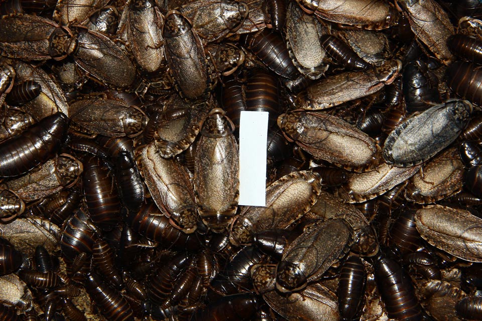 MagBeetls Опубликовано 14 Января, 2012 в 13:07 Автор Жалоба Опубликовано 14 Января, 2012 в 13:07 Вести с тараканьего фронта! Сегодня пересаживал-чистил опытную колонию. В ней не представлены самые крупные изолированные линии, которые удалось получить методом облучения ультрафиолетом, основу ее составили особи полученные от первых облученных тараканов. И результат все равно радует! Для наглядности пришлось использовать бумажный прямоугольник с размерами 10х30 мм. Попытки положить на тариков небольшую линейку не увенчались успехом - она быстро тонула в тараканах и фоткать я не успевал. В данном случе, тарики высажены во времянку без лотков. Так всегда делаю, ибо колония большая и можно пересаживать без гуано. На фотографиях запечатлены: некрупная самка (примерно 33 мм.), и крупная (примерно 39 мм.) Собственно, эти особи наглядно показывают изменчивость по признаку размер для данной популяции, а фигурирующие в кадре разновозрастные личинки и взрослые тарики иллюстрируют некоторую статистику размерности для данной популяции.